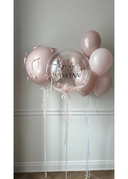 В состав набора воздушных и гелиевых шаров на девичник входит: