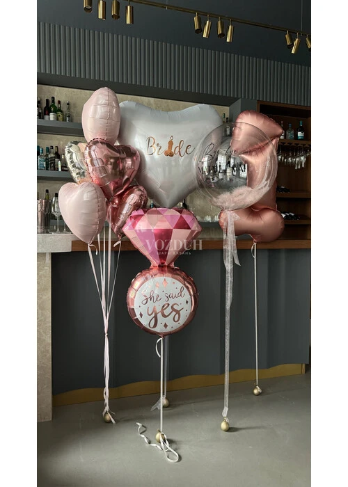 В состав набора воздушных и гелиевых шаров на девичник входит: