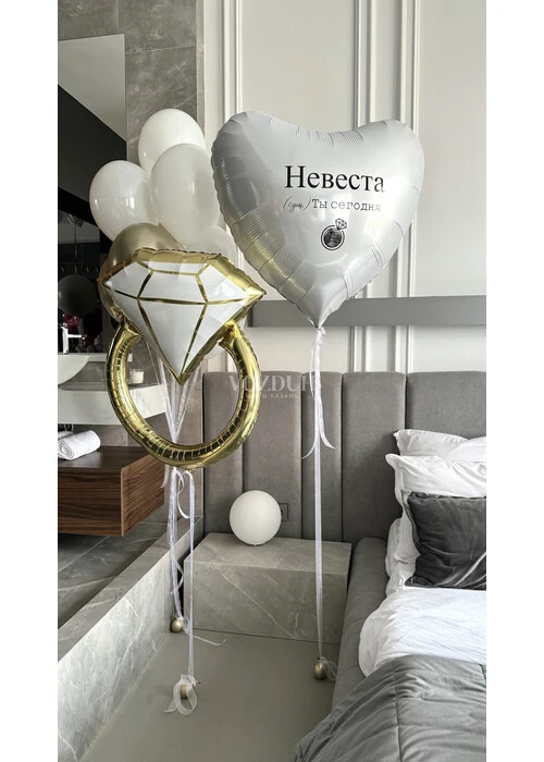 Набор шаров на девичник с большим сердцем с фотографией и кольцом №3324