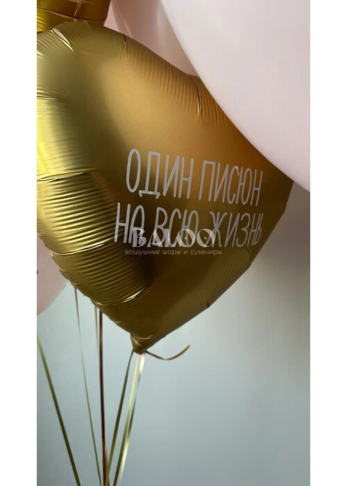 * Связка из 5 латексных шаров с добавлением двух фольгированных сердец с надписью