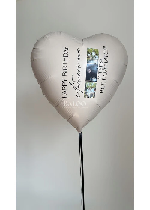 * Фольгированный гелиевый шар в виде сердца с фотопечатью и надписью.