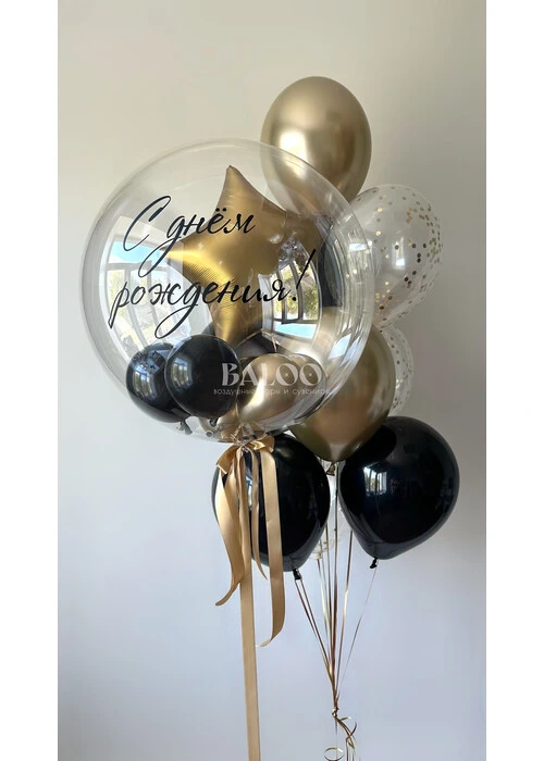 Набор гелиевых шаров в черном и золотом цвете на день рождения мужчины №3366 — отзывы