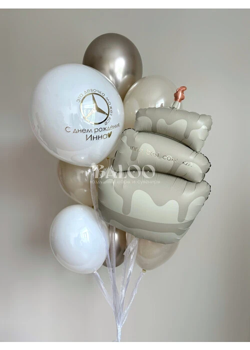 * Связка из 8 латексных шаров дабл, одного латексного шара дабл 18 дюйм с надписью и фольгированного шара "Торт" с индивидуальной надписью