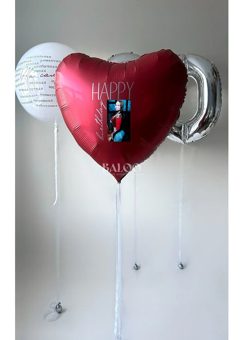 Набор шаров с красным сердцем с фото и большим шаром с комплиментами №3411 — отзывы