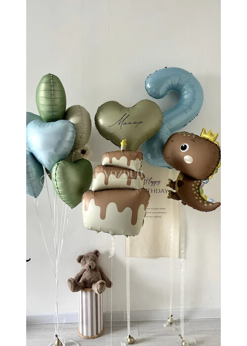 Набор с тортом, динозавром, сердцем с надписью и цифрой для мальчика №9655