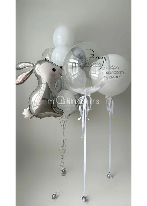 Набор гелиевых шаров на выписку с зайчиком, большими шарами и связкой №3160 — отзывы