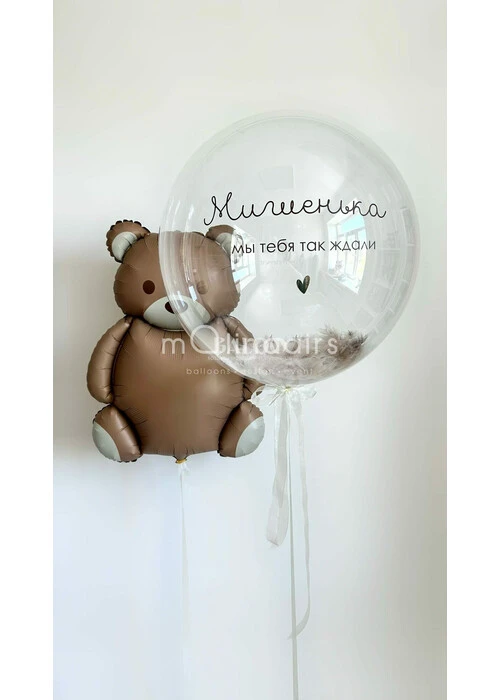Набор гелиевых шаров с мишкой и большим прозрачным шаром №3108 — отзывы