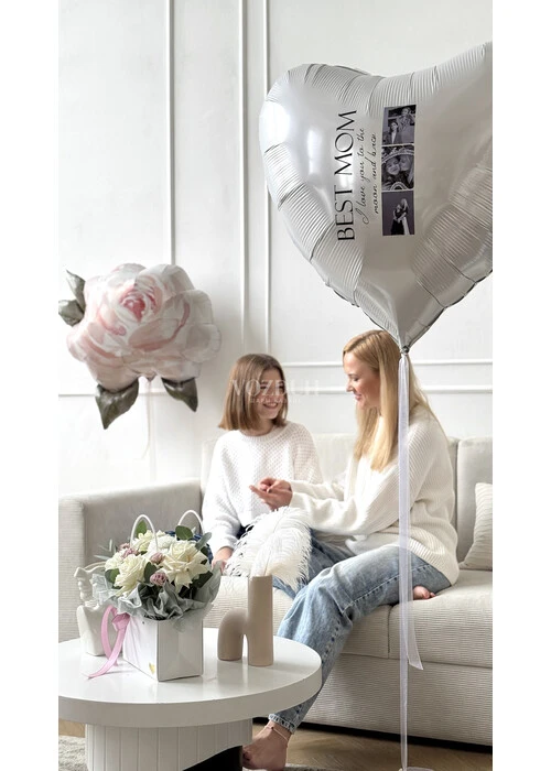 Набор гелиевых шаров с метровым белым сердцем №28