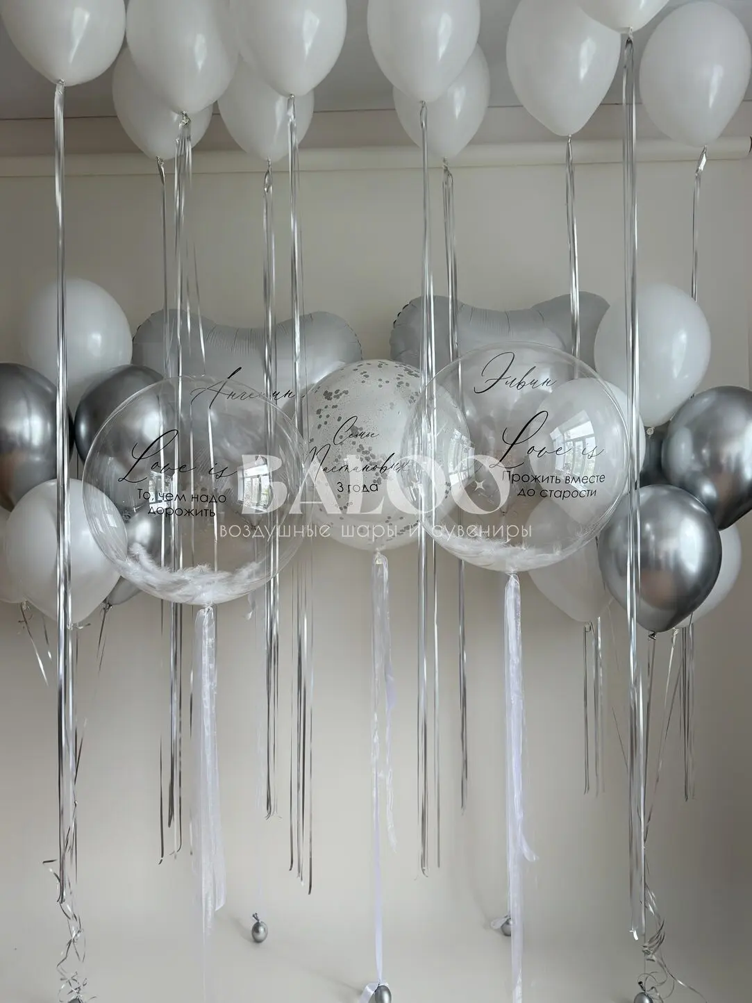 Набор гелиевых воздушных шаров на выписку белого цвета с большими сердцами №9829 — отзывы