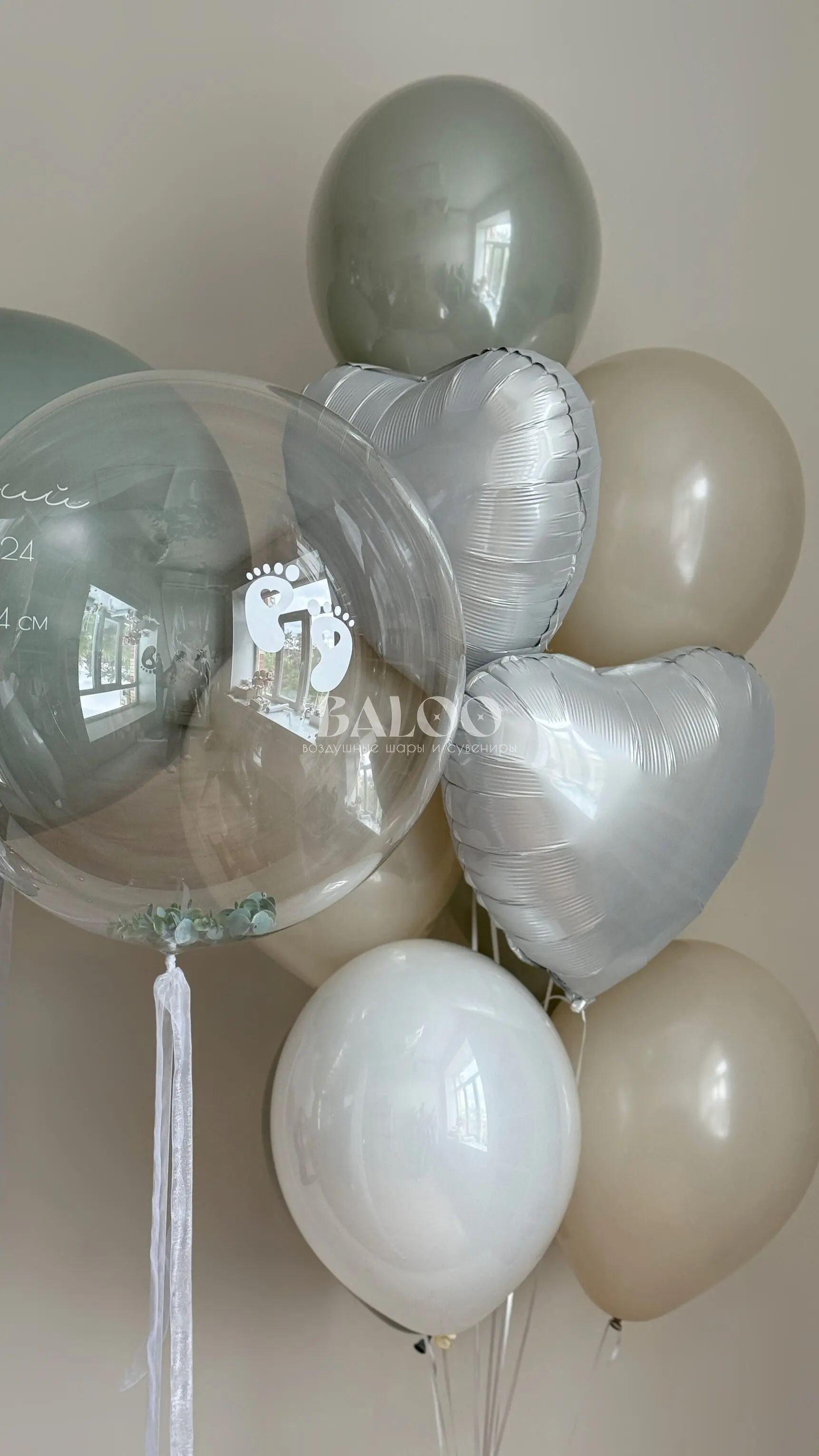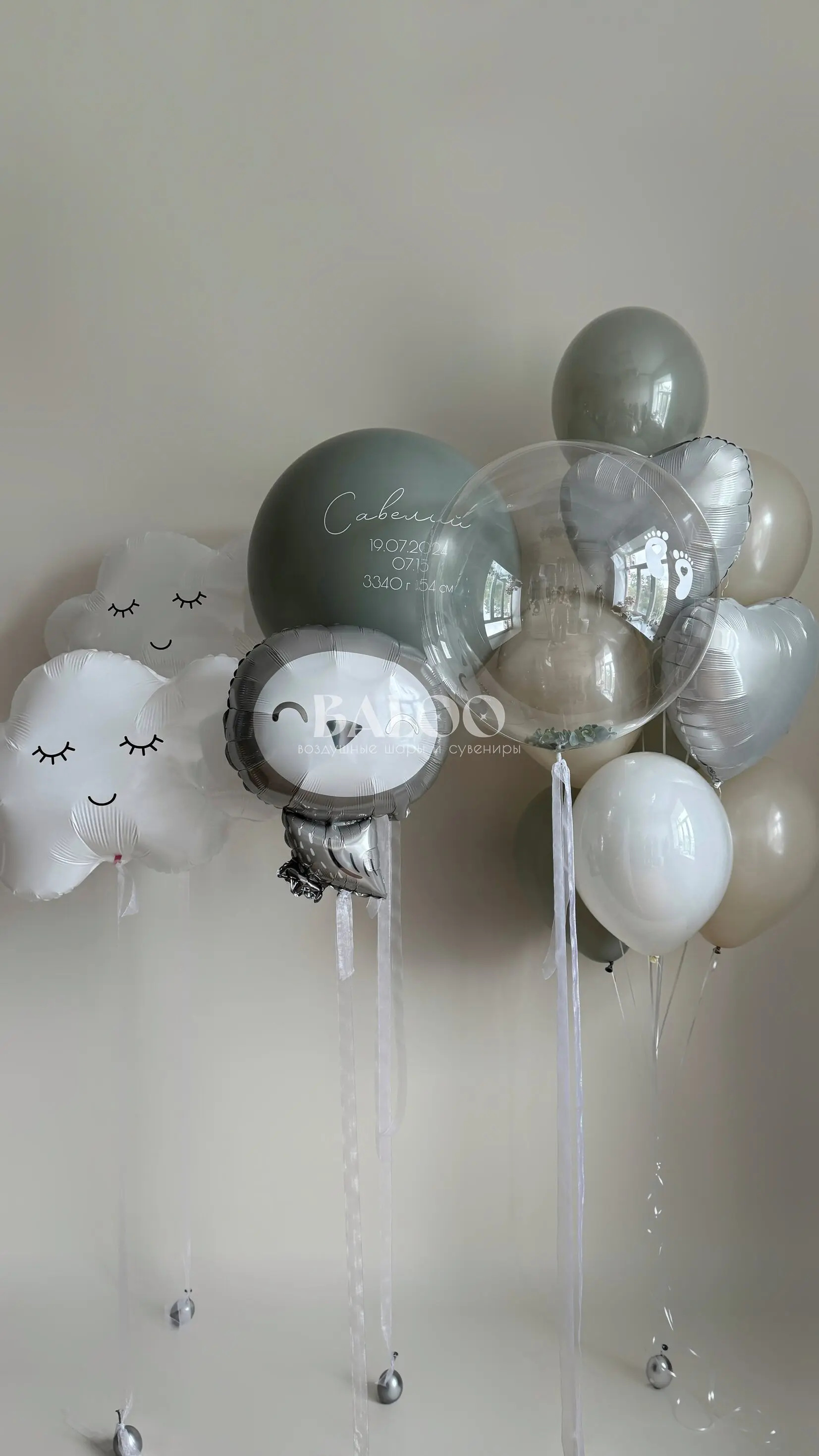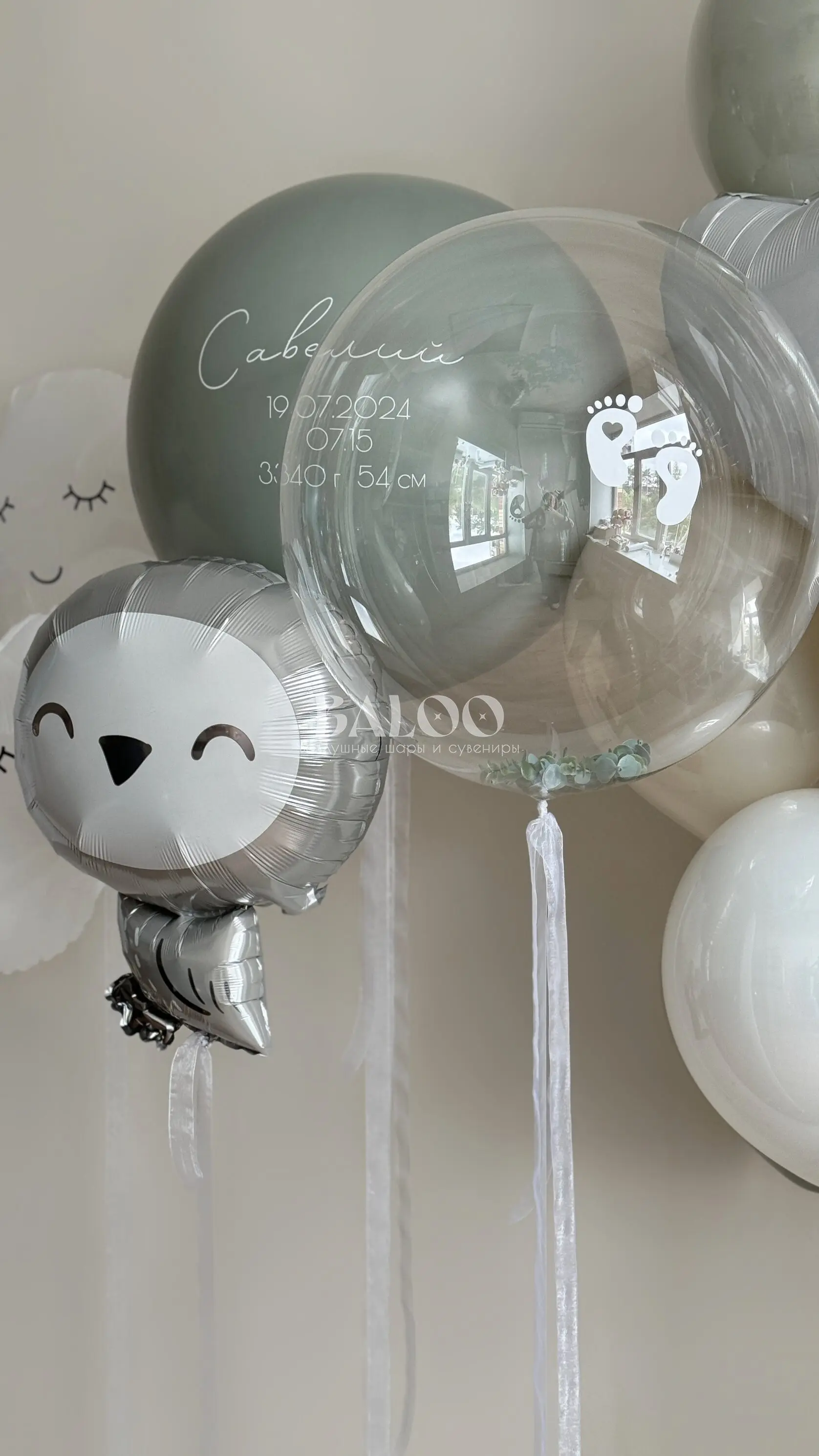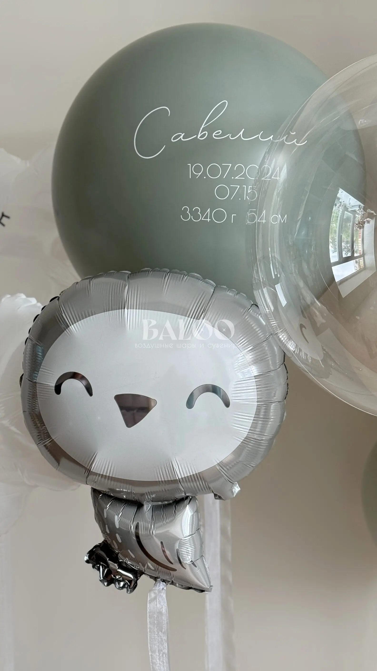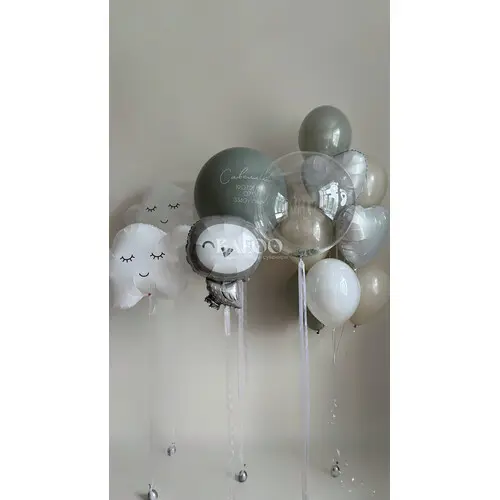 Набор гелиевых воздушных шаров на выписку с серой совушкой и связкой из шаров №9831 — отзывы
