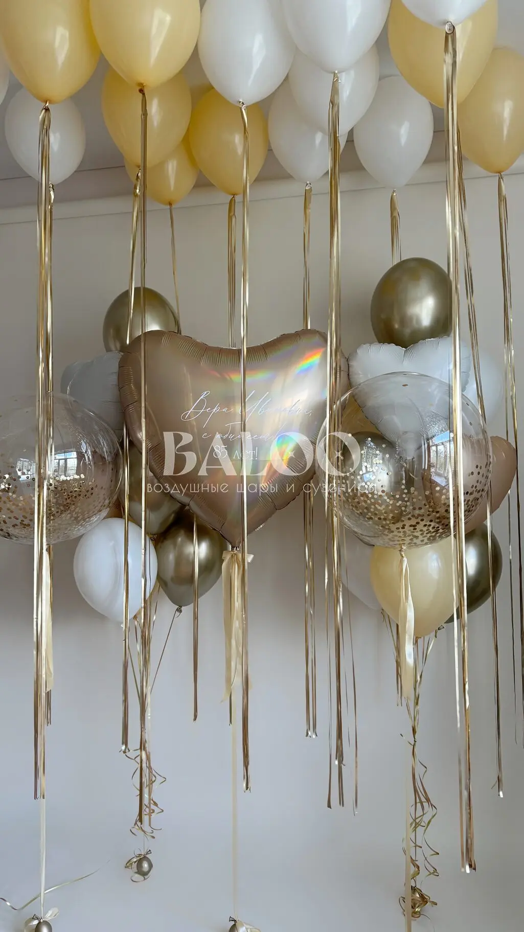 Набор гелиевых воздушных шаров на выписку с большим золотым сердцем №9835 — отзывы