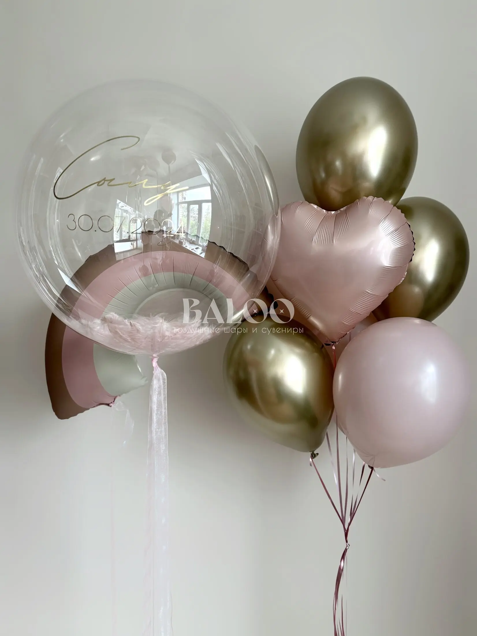 Набор гелиевых воздушных шаров на выписку с радугой и прозрачным шаром №9836 — отзывы
