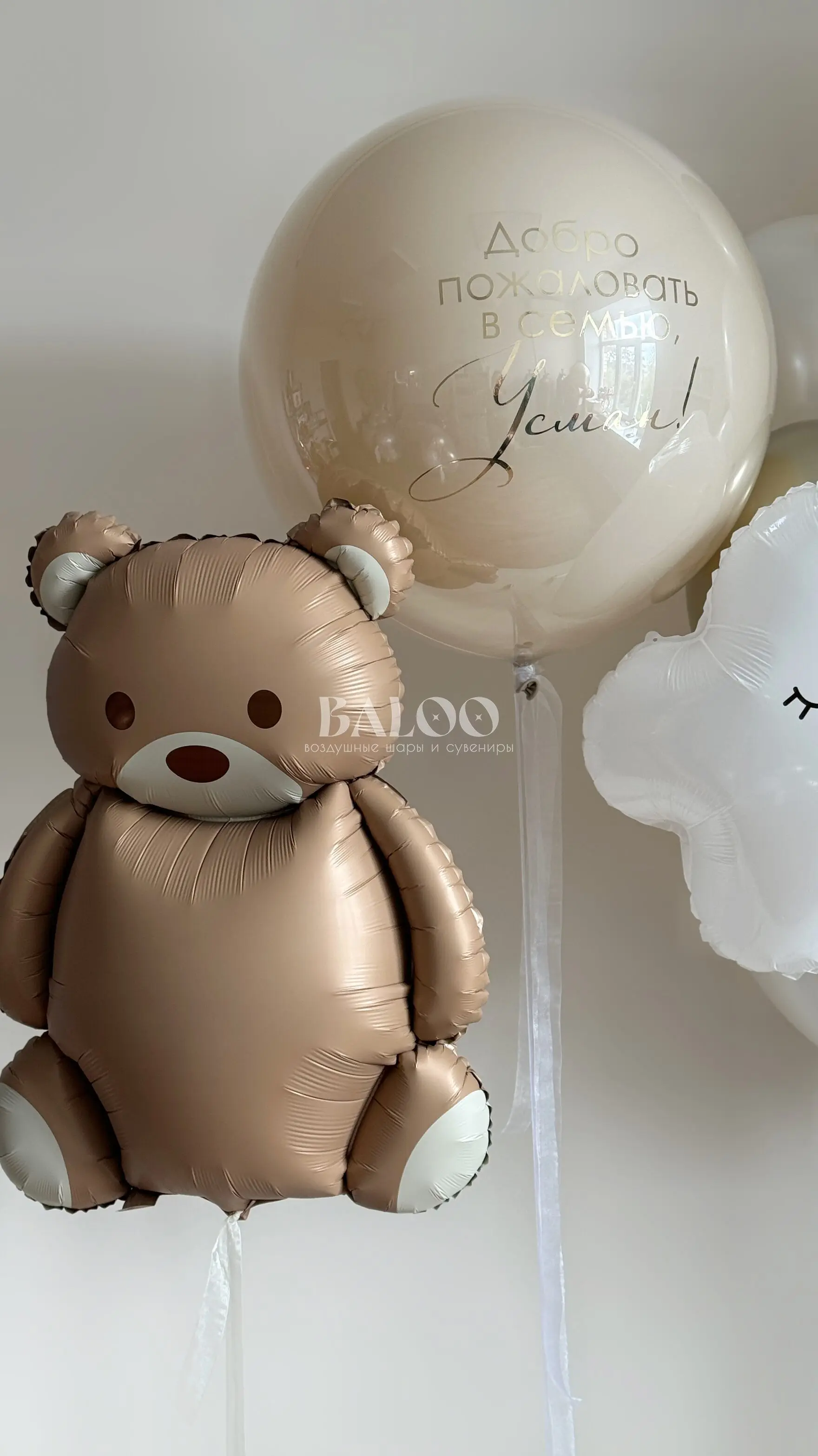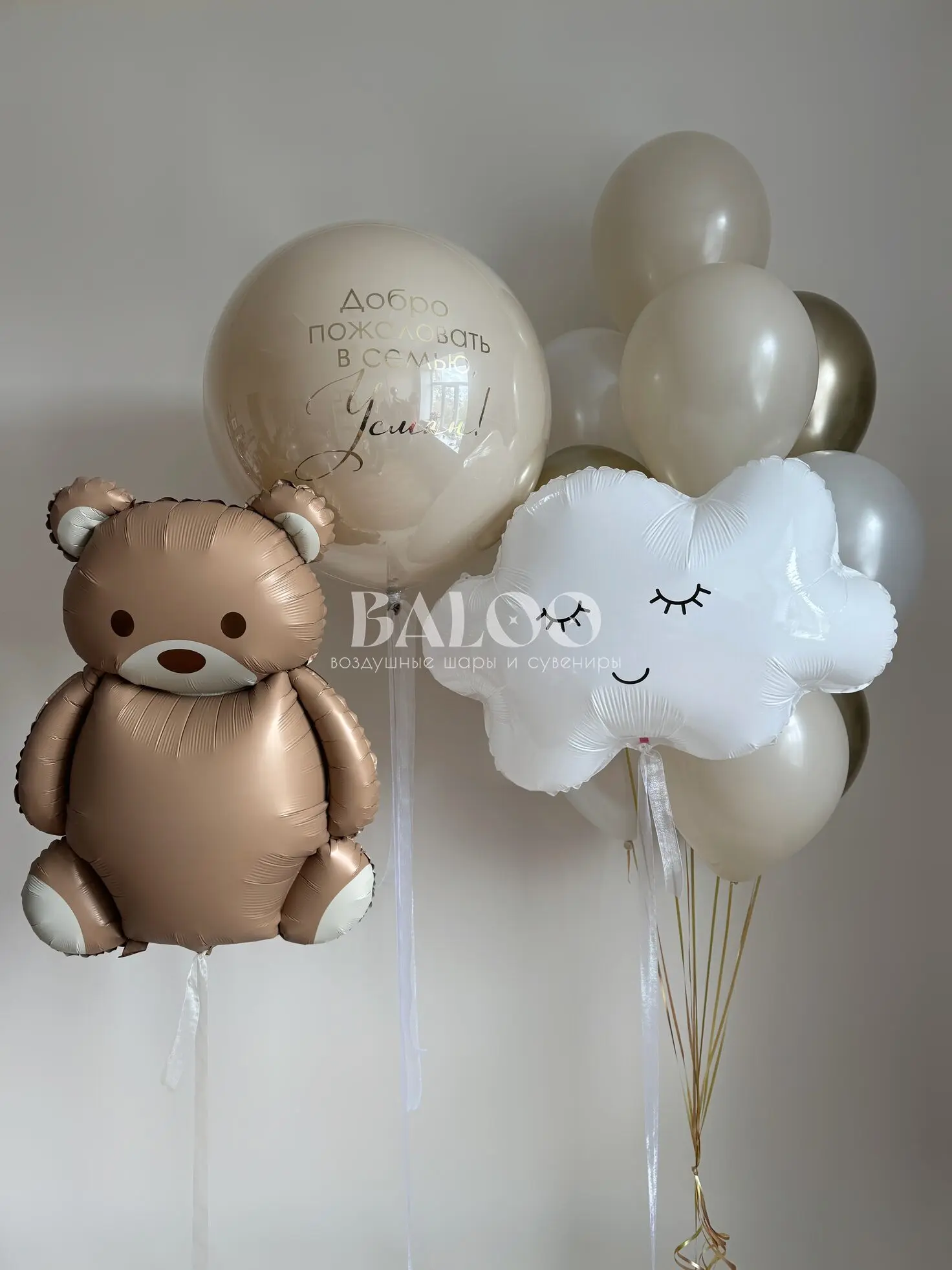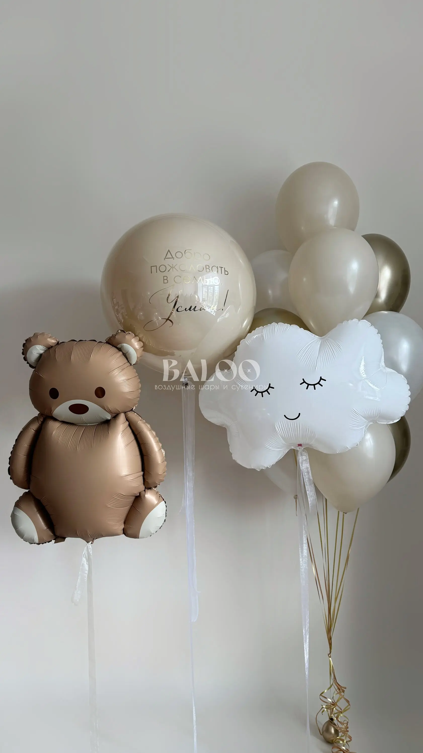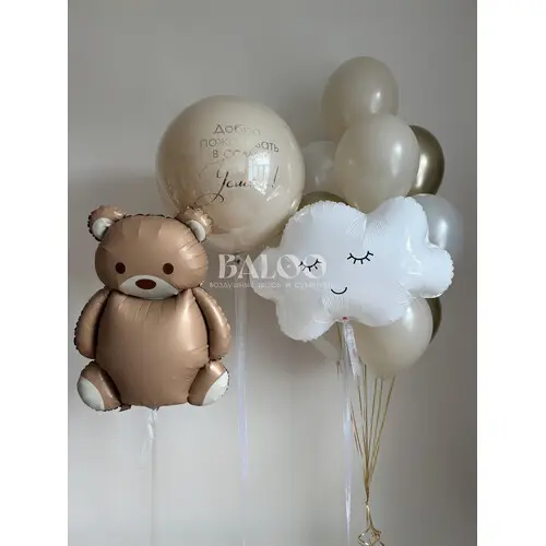 Набор гелиевых воздушных шаров на выписку с мишкой и облачком №9838 — отзывы