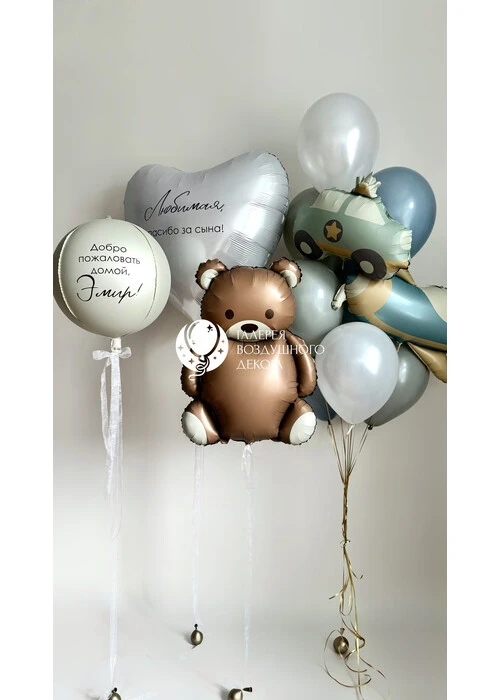 Набор гелиевых воздушных шаров на выписку с большим сердцем и самолетом №9843 — отзывы