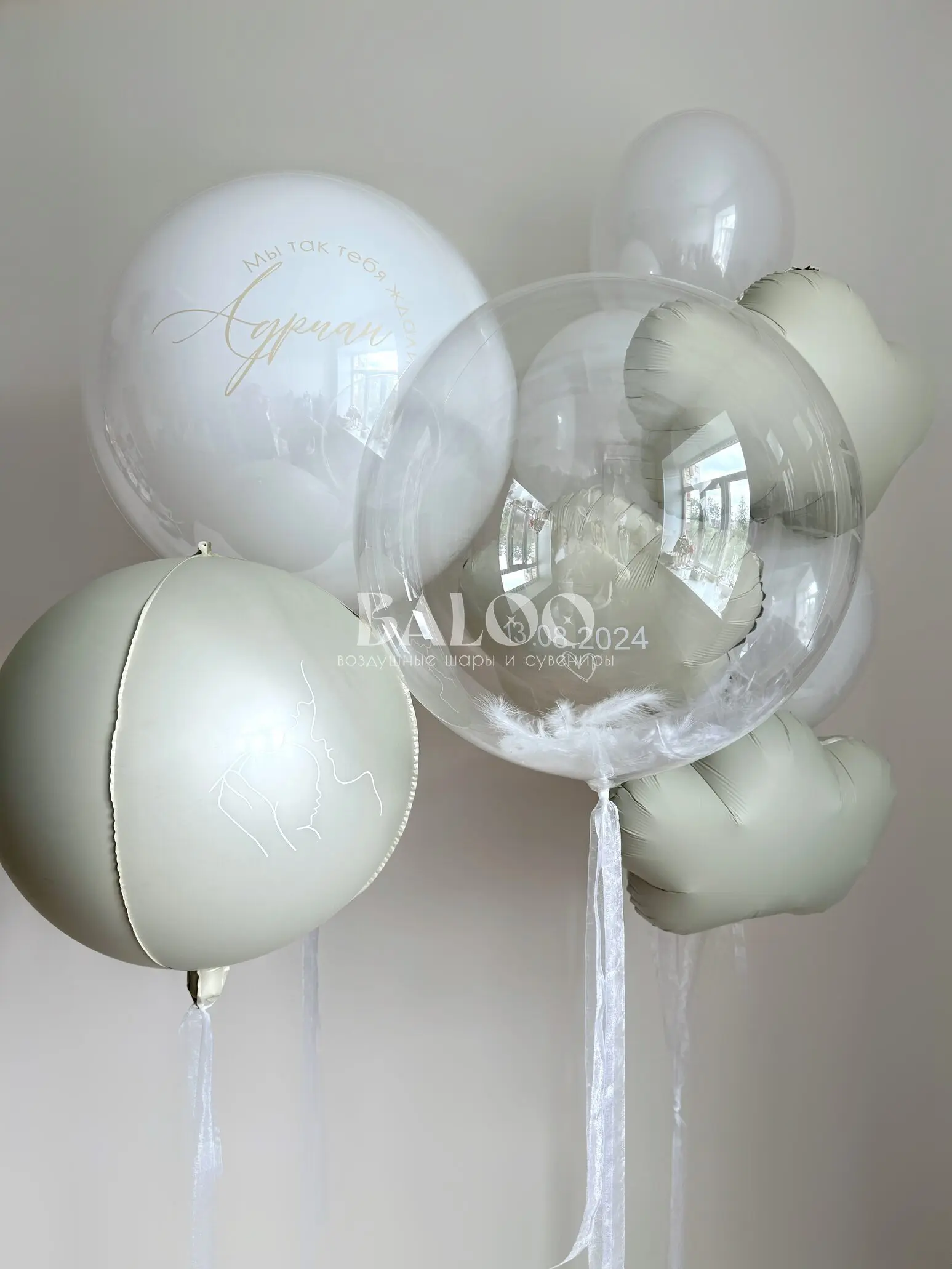 Набор гелиевых воздушных шаров на выписку с беживыми облаками №9845 — отзывы