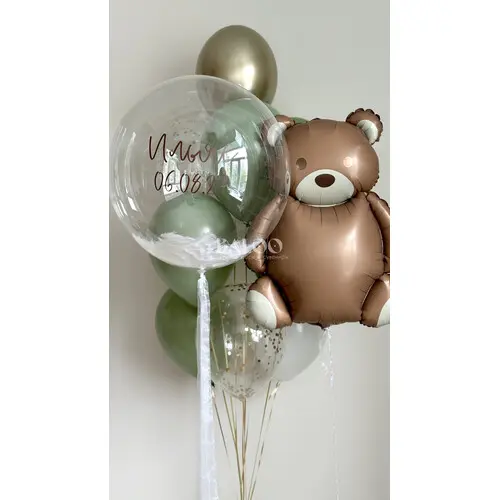 Набор гелиевых воздушных шаров на выписку баблс и мишка №9847 — отзывы
