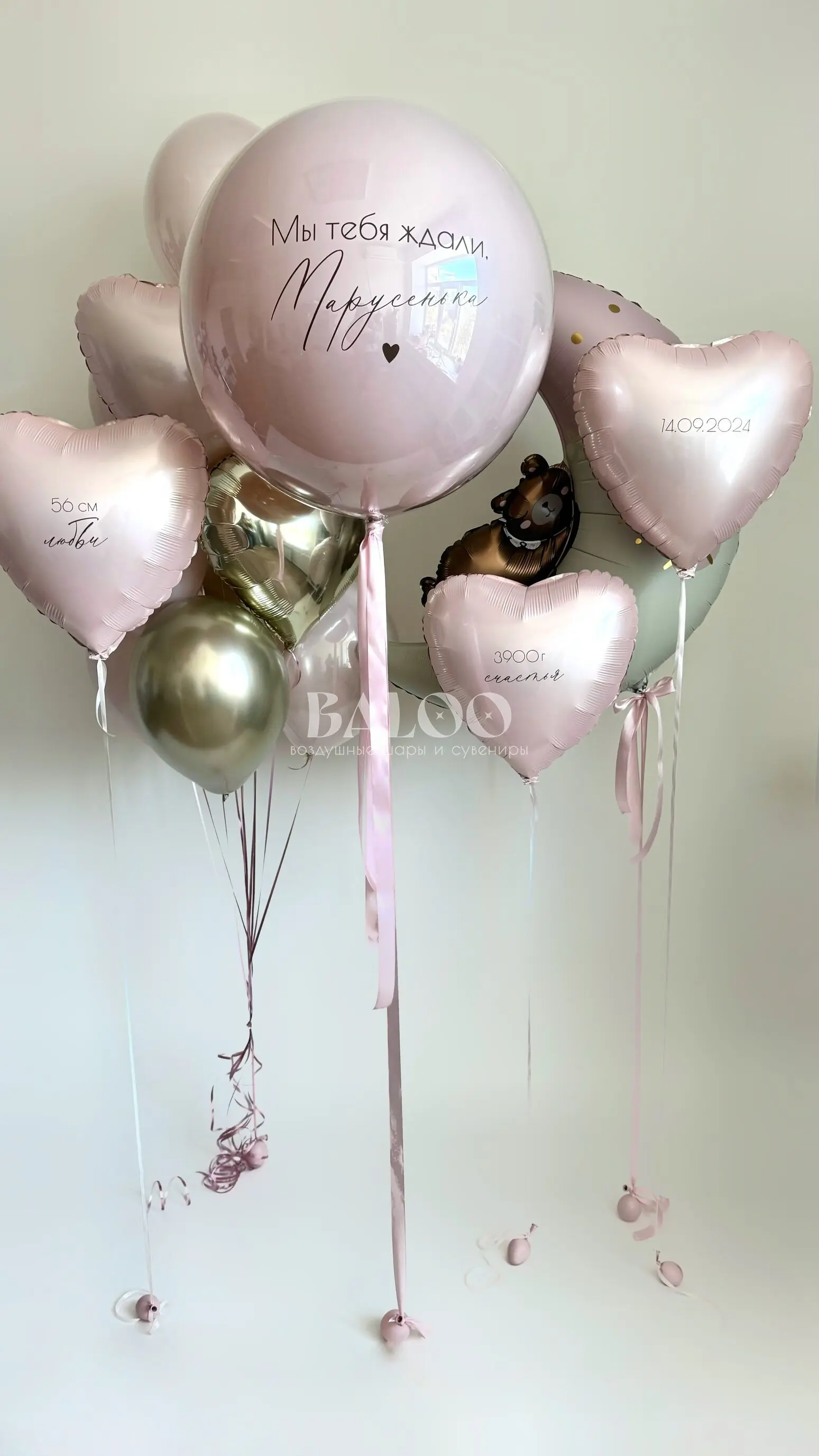 Набор гелиевых воздушных шаров на выписку для девочки с мишкой на луне №9861 — отзывы