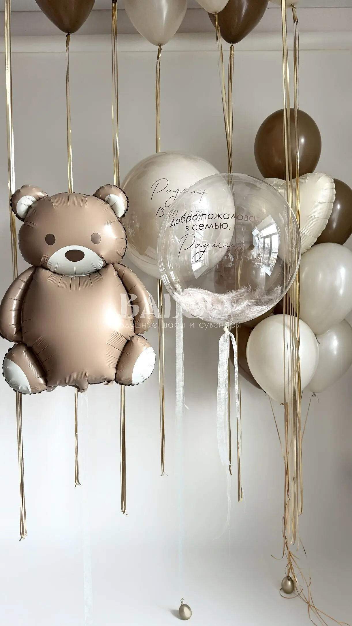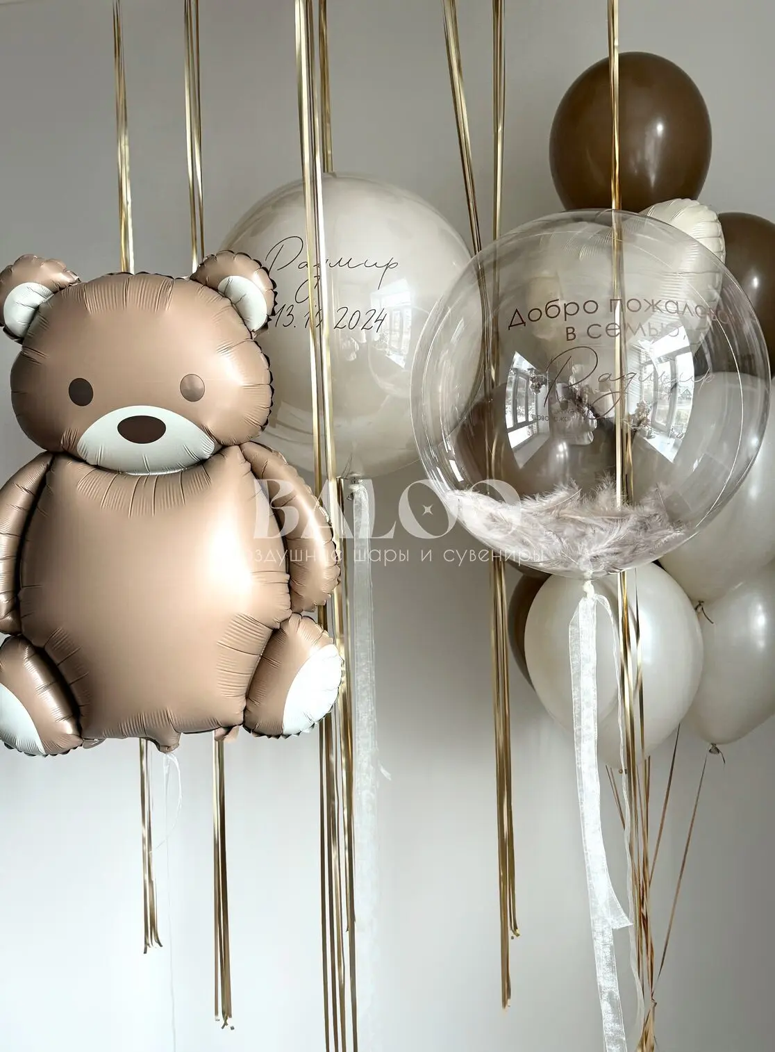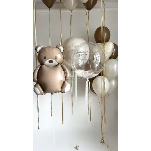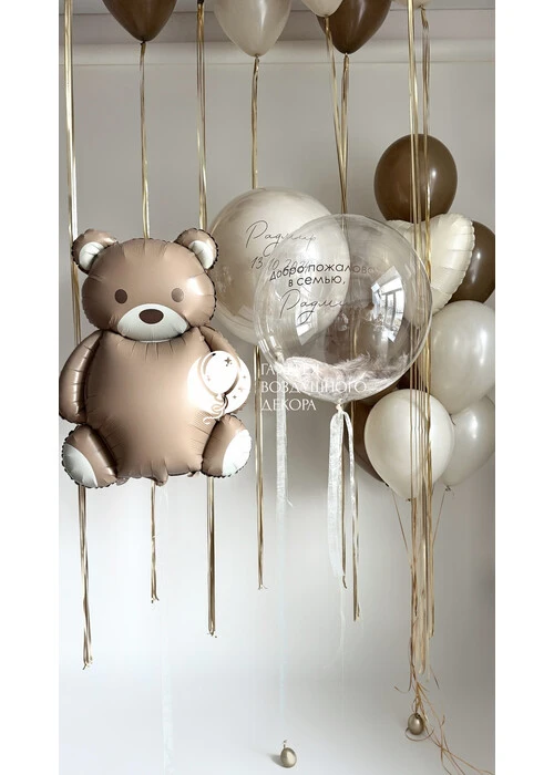 Набор гелиевых воздушных шаров на выписку коричневые шары и мишка №9864 — отзывы