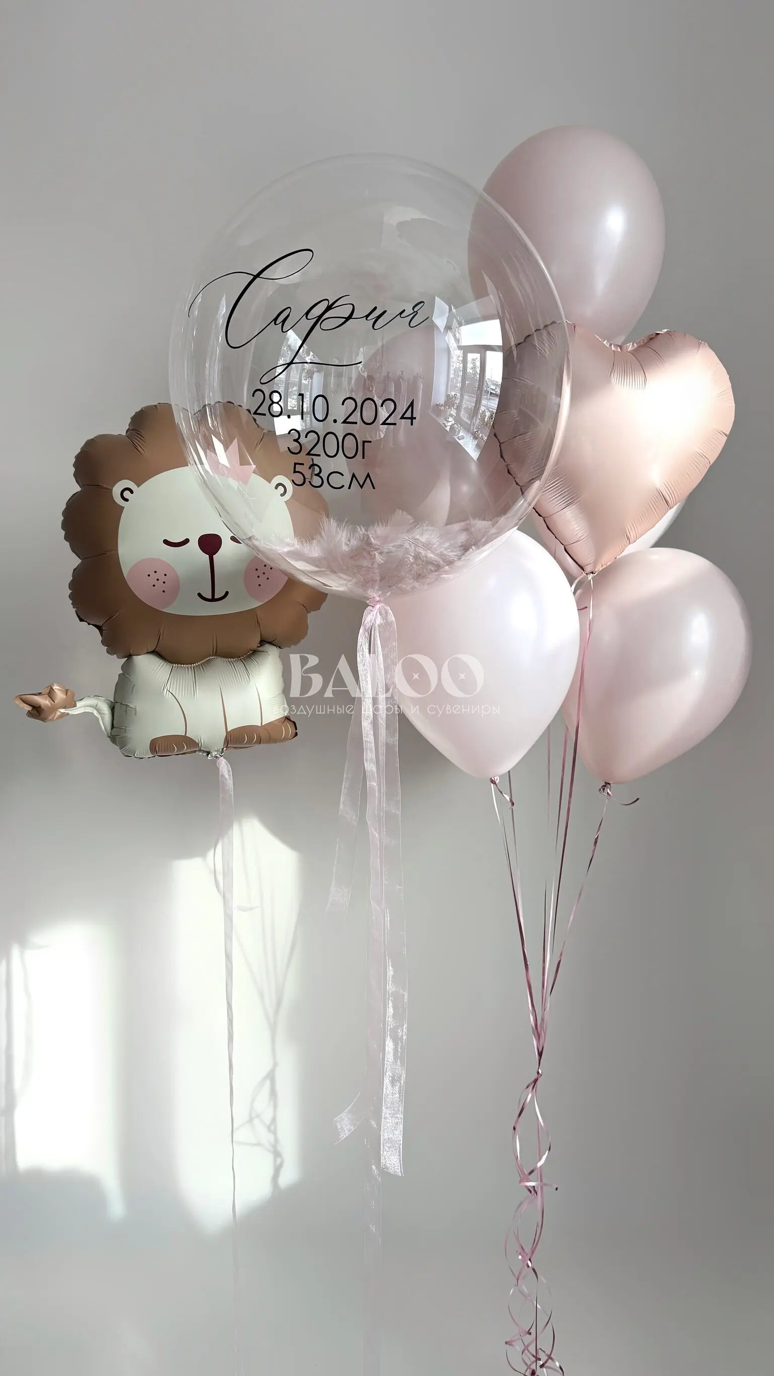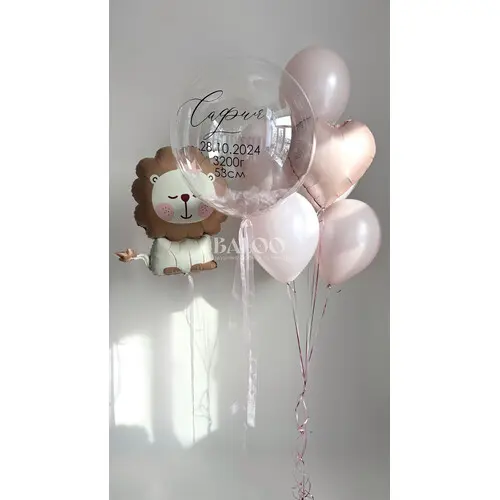 Набор гелиевых воздушных шаров на выписку для девочки с баблс и львенком №9873 — отзывы