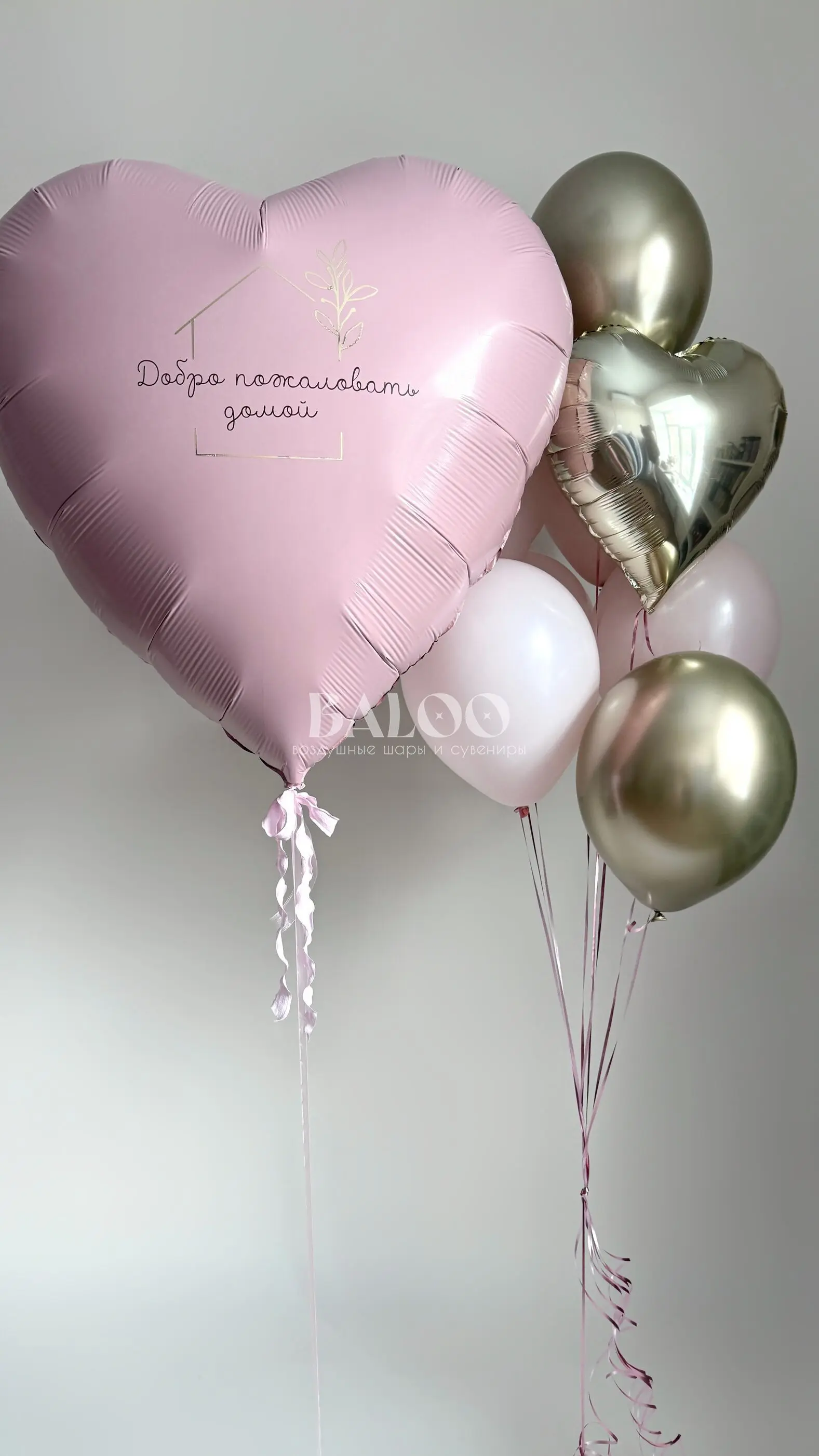 Набор гелиевых воздушных шаров на выписку розовое сердце и связка шаров №9874 — отзывы