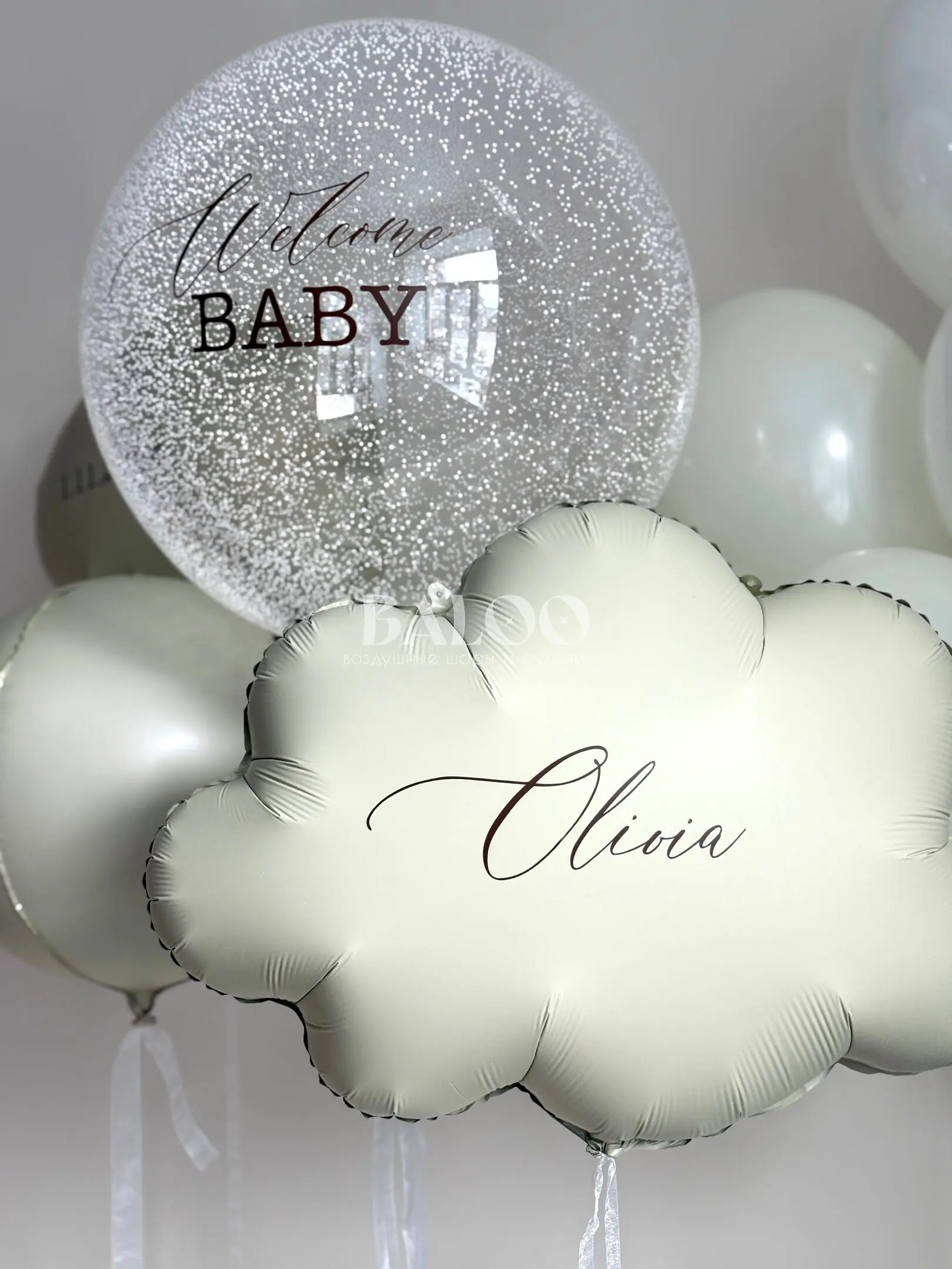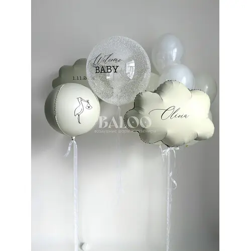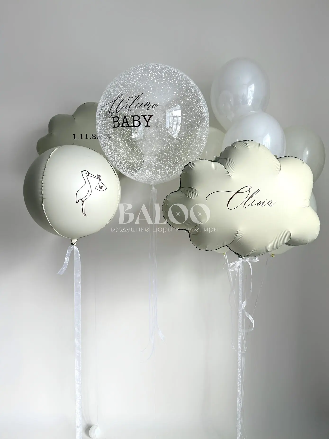 Набор гелиевых воздушных шаров на выписку бежевые облачка и сфера №9876 — отзывы