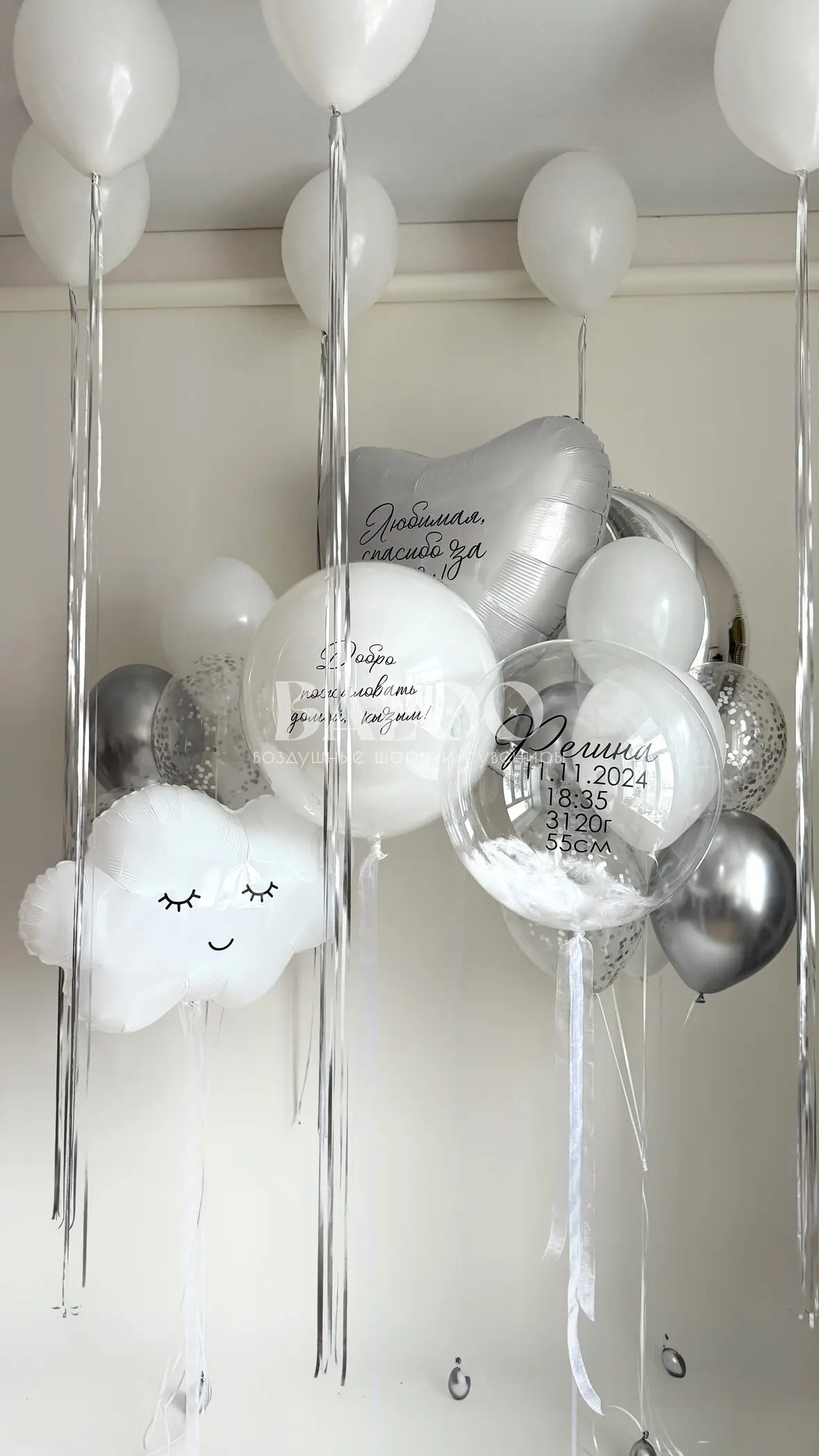 Набор гелиевых воздушных шаров на выписку для малыша с месяцем №9880 — отзывы