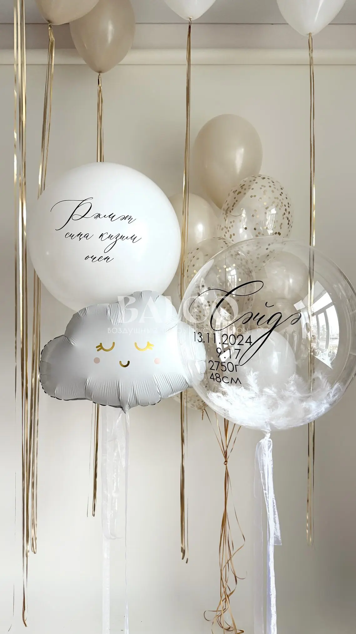 Набор гелиевых воздушных шаров на выписку баблс сперьями и связка шаров №9881 — отзывы