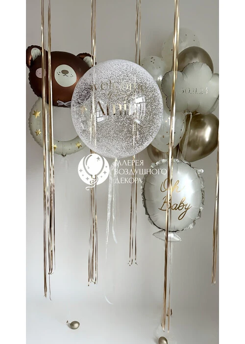 Набор гелиевых воздушных шаров на выписку мишка погремушка и баблс с пенопластом №9886 — отзывы