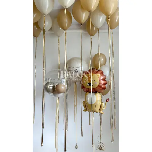 Набор гелиевых шаров на выписку с большими шарами и львом №9890