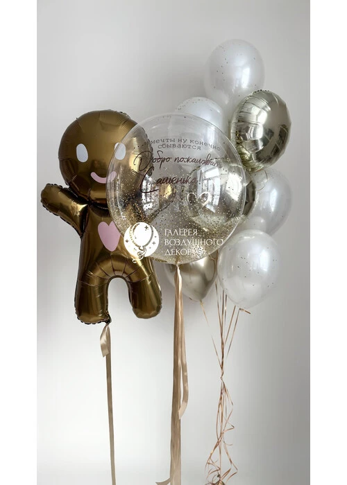 Набор гелиевых воздушных шаров на выписку с пряничным человечком №9897