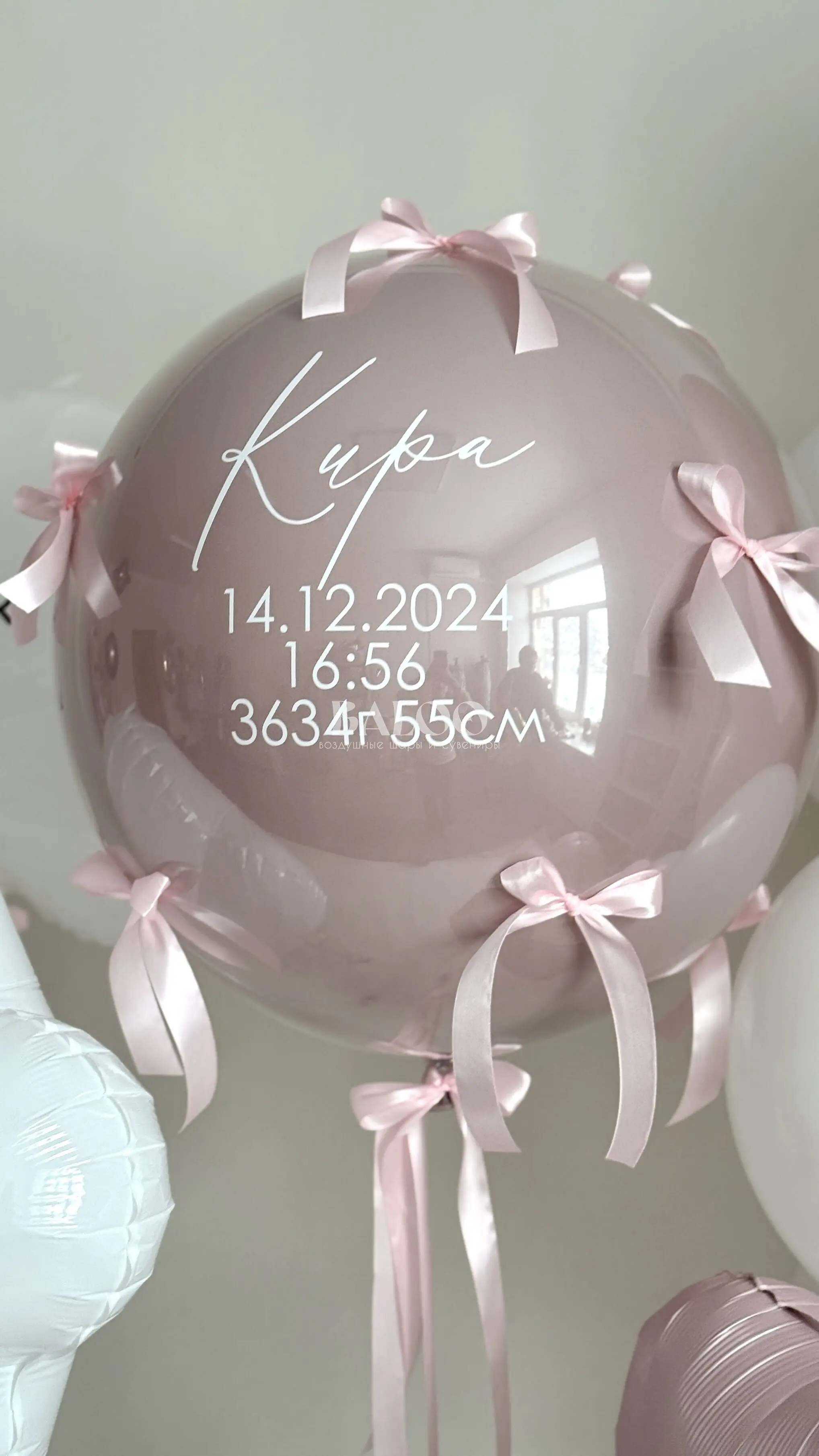 Латексный гелиевый шар даблбабл 24 дюйма с бантиками и надписью