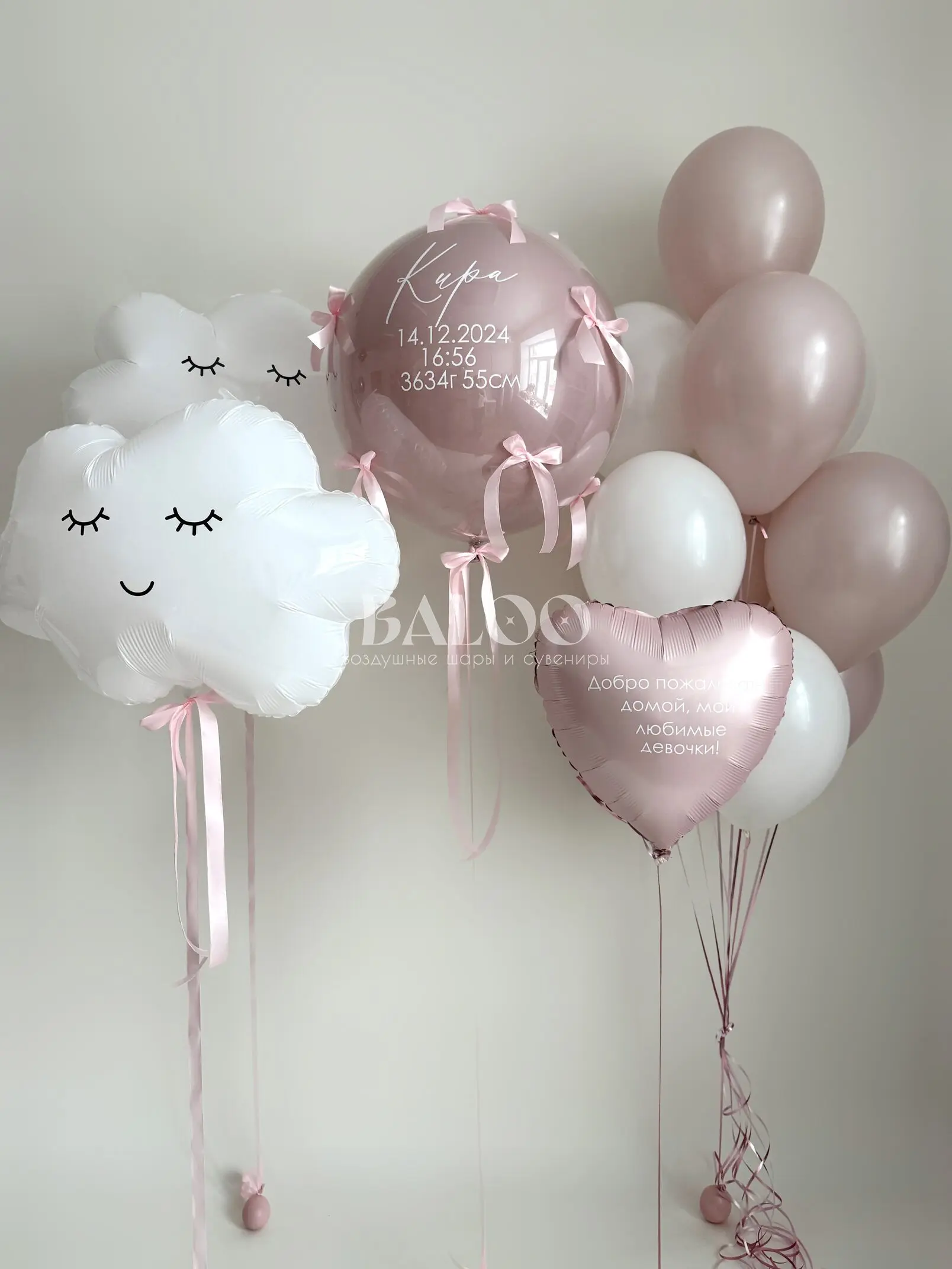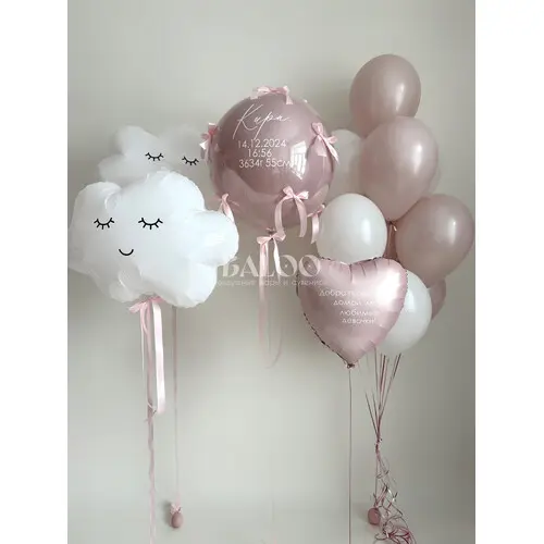 Набор гелиевых воздушных шаров на выписку для девочки большой шар с бантиками №9899 — отзывы