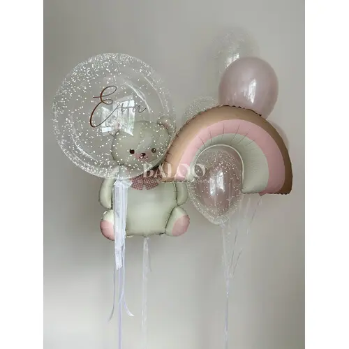 Набор воздушных шаров для девочки с радугом и мишкой №9906