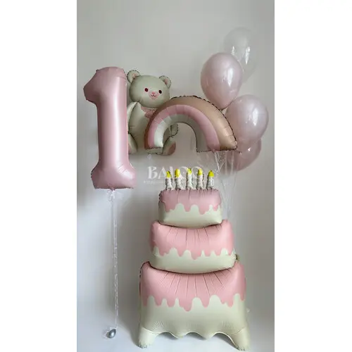 Набор воздушных шаров для девочки на годик с тортом №9907