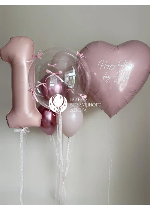 Набор гелиевых шаров для девочки на годик с розовым сердцем №9910 — отзывы