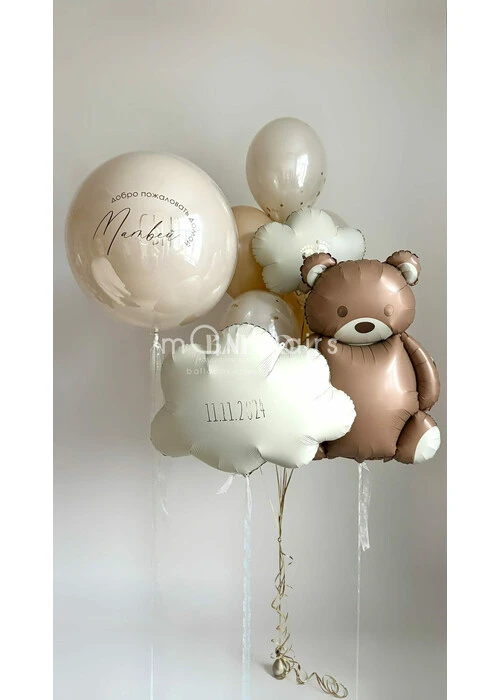 Состав набора Стеклянный шар с надписью Облако большое с надписью Фигура Мишка Барни Связка из 7 шаров с облаком