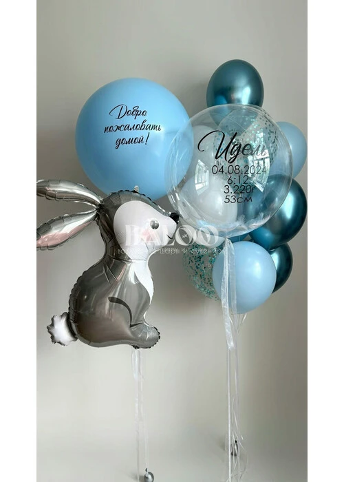 Набор гелиевых воздушных шаров на выписку мальчика с зайчиком №9842 — отзывы