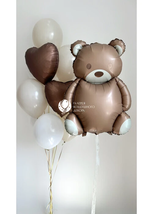 Набор воздушных шаров для девочки с коричневым мишкой №9922