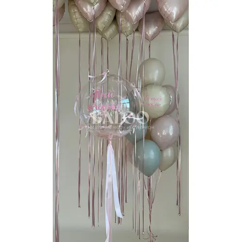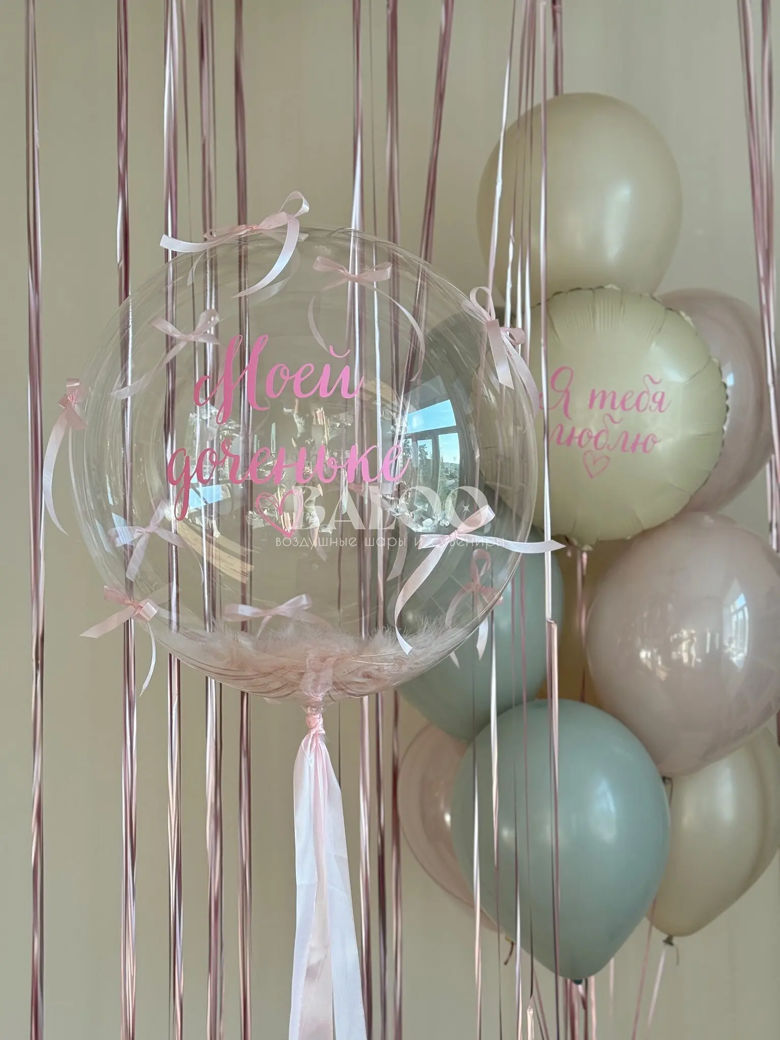 Латексный гелиевый шар 24 дюйма даблбабл с перьями, бантиками и надписью
