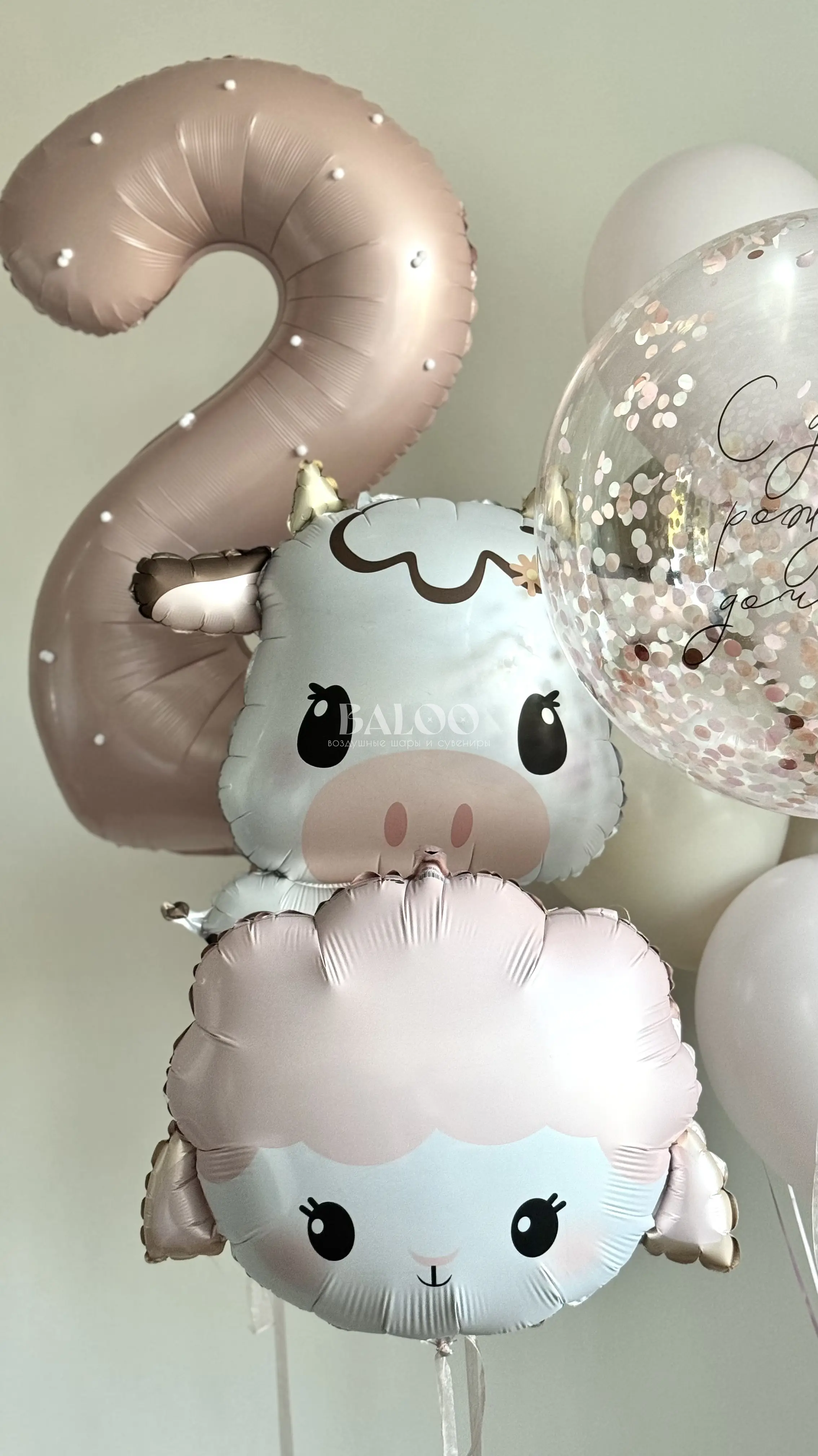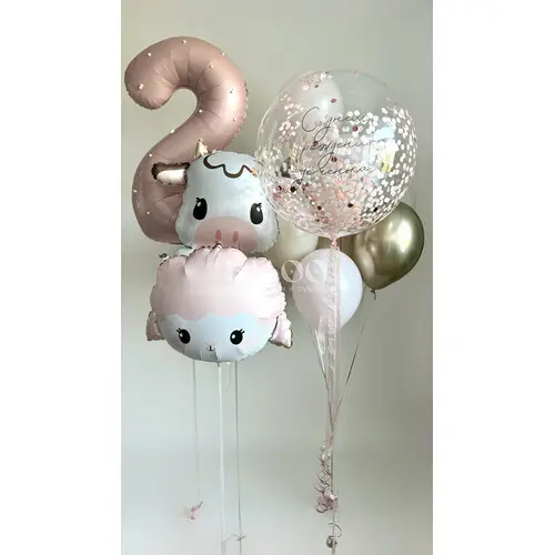 Набор воздушных шаров для девочки с коровой и овечкой №9926