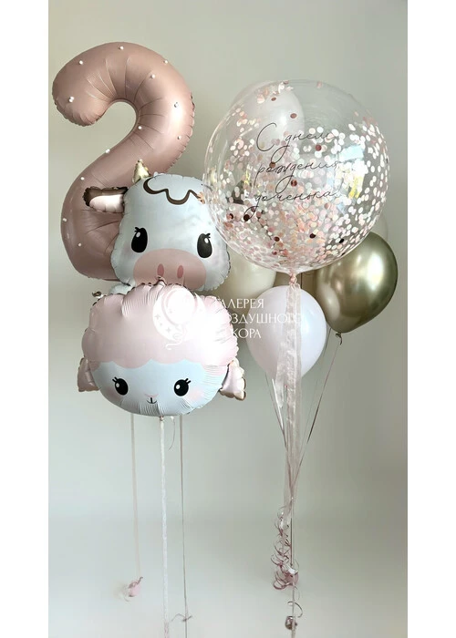 Набор воздушных шаров для девочки с коровой и овечкой №9926 — отзывы