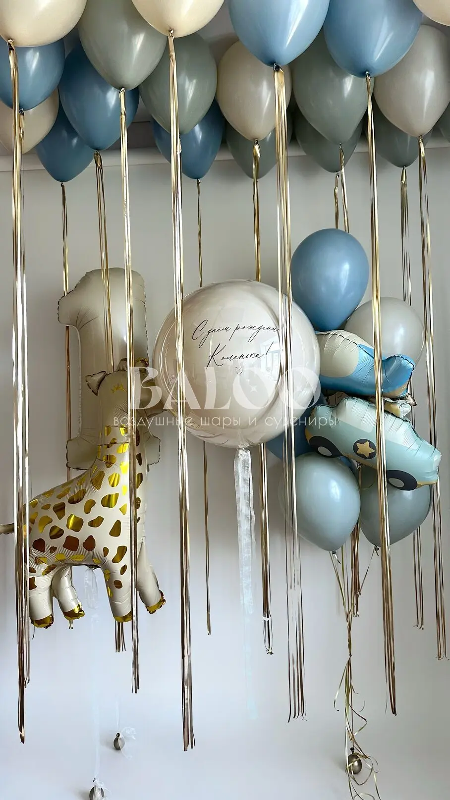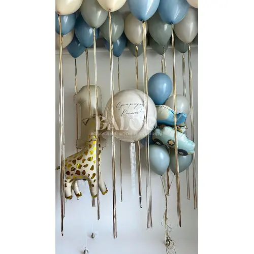 Набор воздушных шаров для мальчика с жирафом на годик №9952