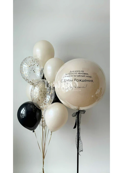 Набор гелиевых шаров на день рождения в бежевом и черном цвете №3342 — отзывы