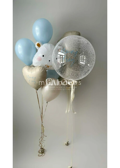 Набор гелиевых шаров с бежевой цифрой и мишкой для мальчика №2997 — отзывы
