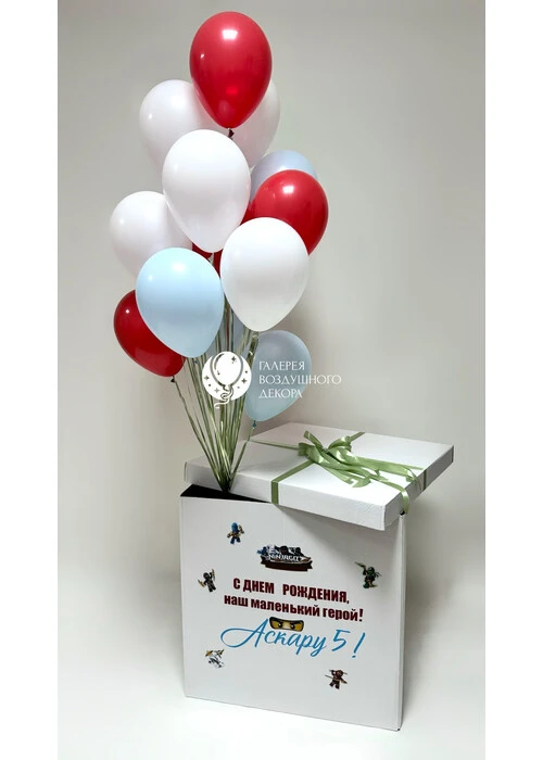 Набор воздушных шаров для мальчика ниндзя с коробкой сюрприз №9981