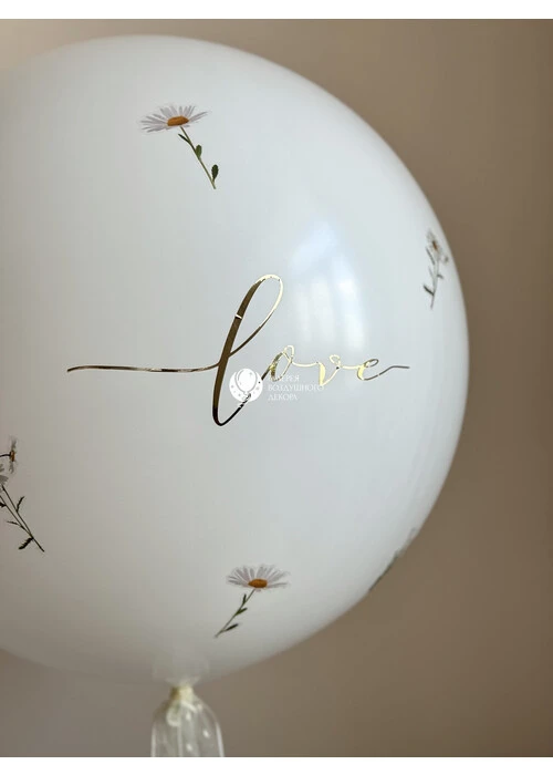 Латексный гелиевый шар 24 дюйма с надписью и наклейками в виде цветов