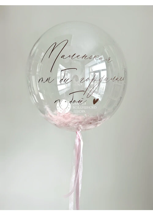 Латексный гелиевый шар 24 дюйма баблс с перьями и надписью