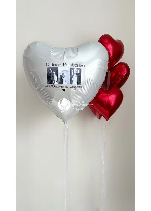 Фольгированное сердце 36 дюймов с надписью и фото