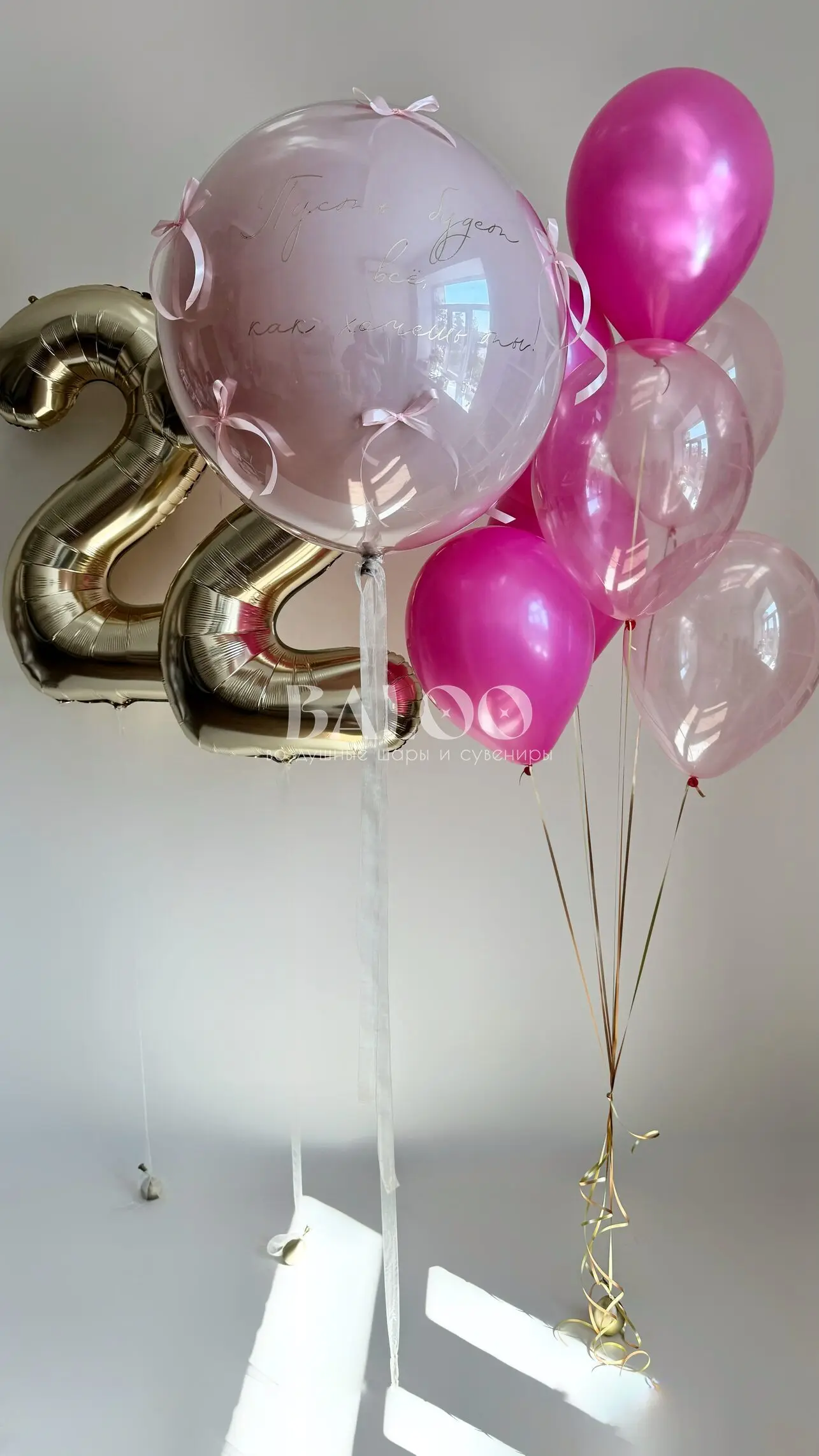 Набор воздушных шаров для девушки с большим шаром с бантиками и двумя цифрами №10016 — отзывы