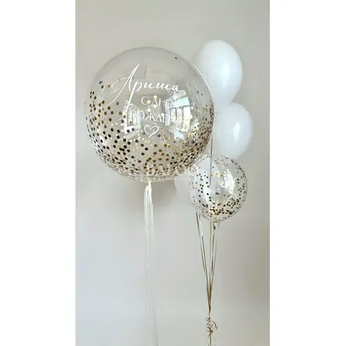 Латексный гелиевый шар 24 дюйма баблс сконфетти и надписью